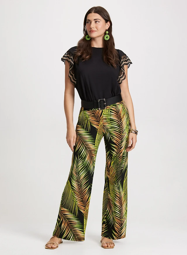 Crochet Trim T-Shirt & Palm Print Pants