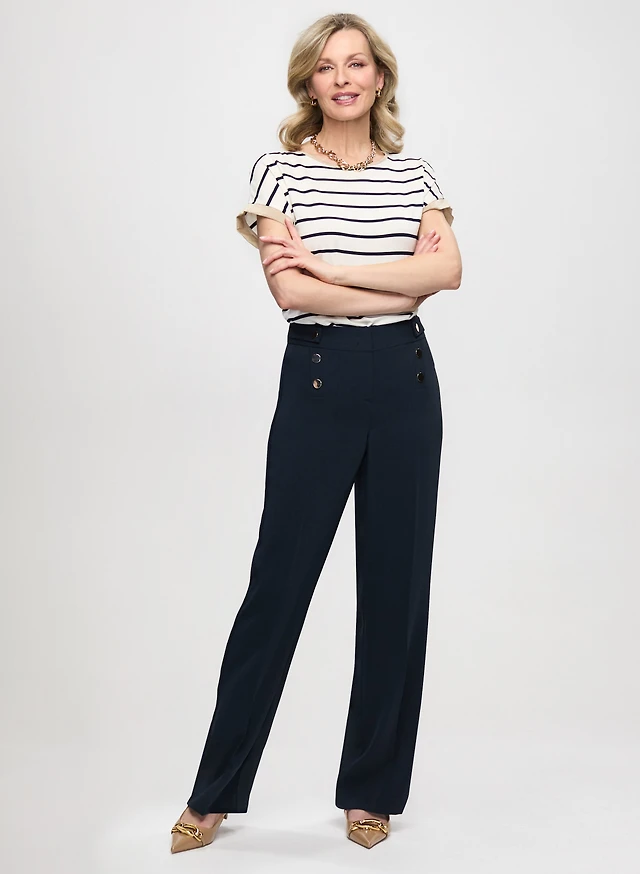Decorative Button Stripped Sweater & Slim Leg Ankle Pants