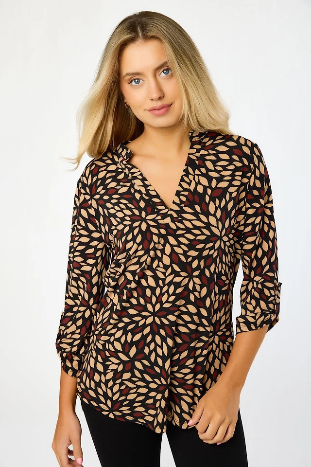Small Leaf Print V-Neck 3/4 Sleeve Blouse
