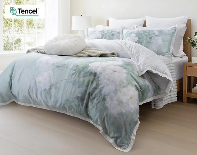 Angelica Duvet Cover, Cotton, TENCEL Lyocell, Floral, White,