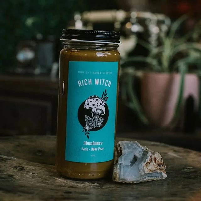 Rich Witch Spell Candle - Witchy Candle - Basil Bosc Pear