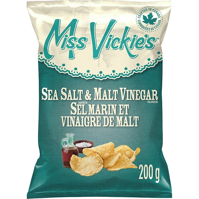 Sea Salt & Malt Vinegar flavour kettle cooked potato chips 200g