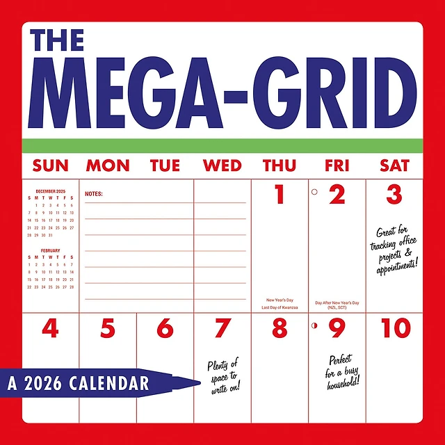 Rainbow Jumbo Magic Grip 2025-2026 Exclusive Wall Calendar