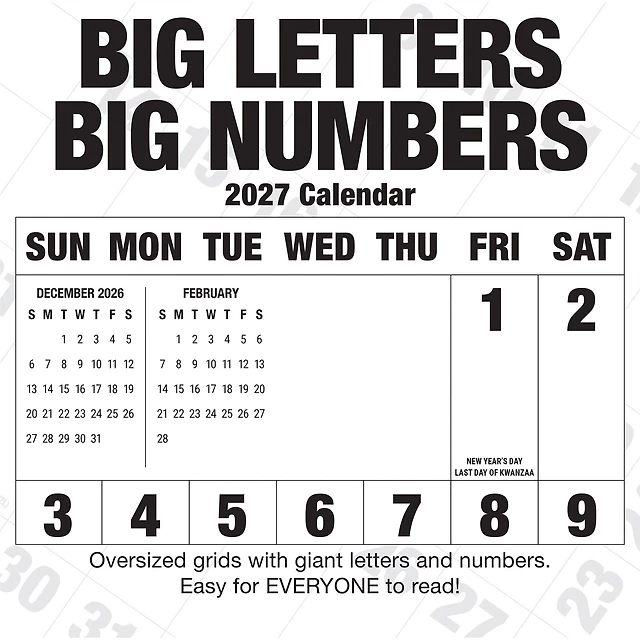 Big Letters Big Numbers 2027 Wall Calendar