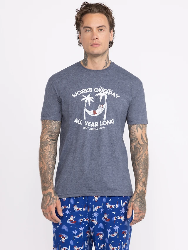 Ardene Man Striped Short Sleeve Shirt For Men in Medium Blue | Size Medium | Cotton/Elastane
