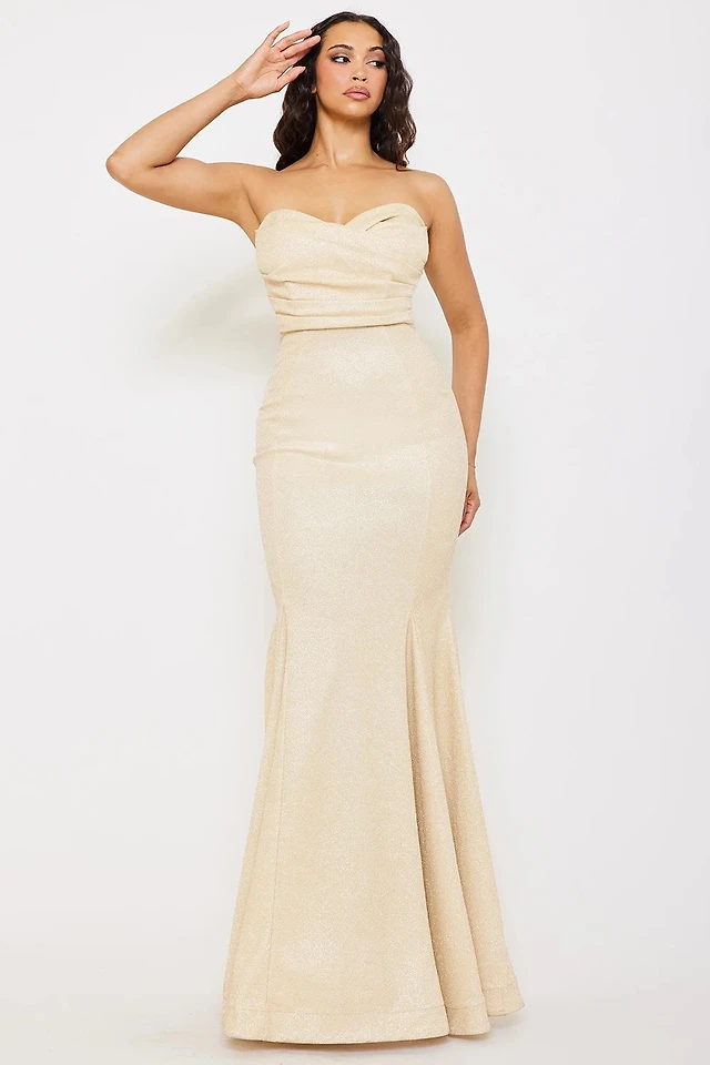 Glitter Swirl Sweetheart Ruched Maxi Dress