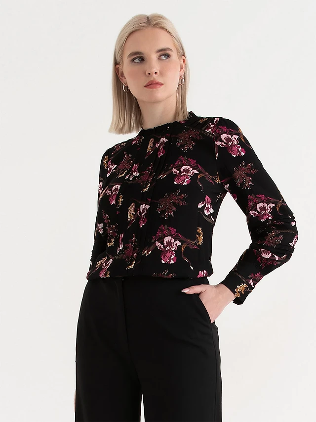 Women's Plus Medium Wash Floral Embroidery Cuffed Shortie