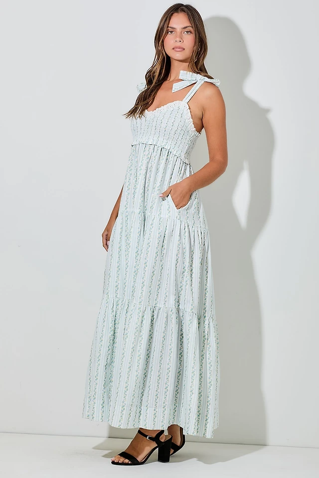 Blue Floral Print Self Tie Waist Wide Leg Pants