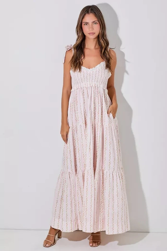 Cream Peach Floral Printed Lace Long Sleeve Top
