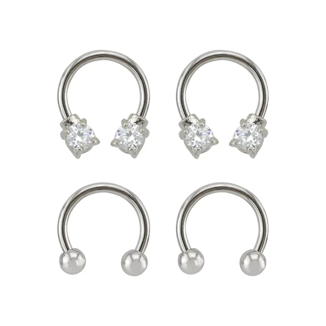 Multi-Pack CZ Horseshoe Rings and Labret Lip Rings 4 Pack - 16 Gauge
