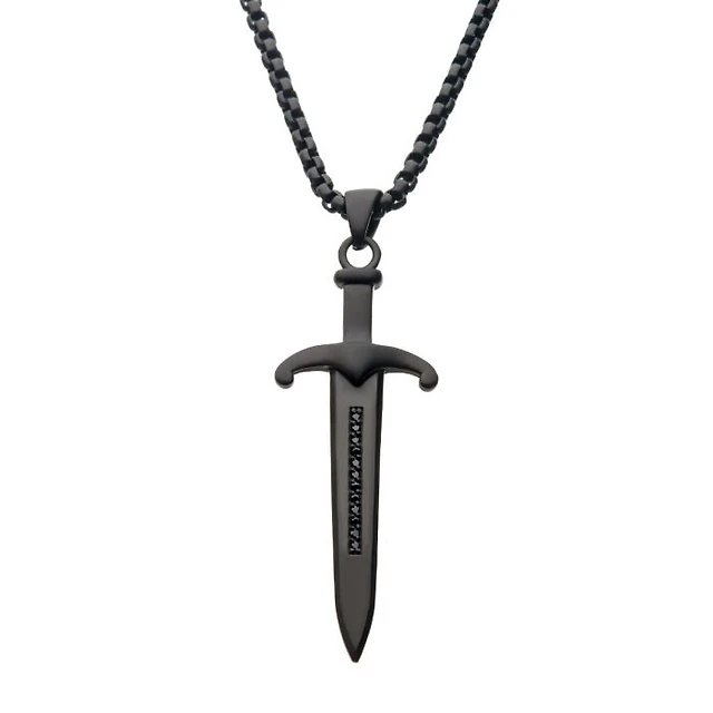 Steel Black IP Sword Pendant with Black Bold Box Chain