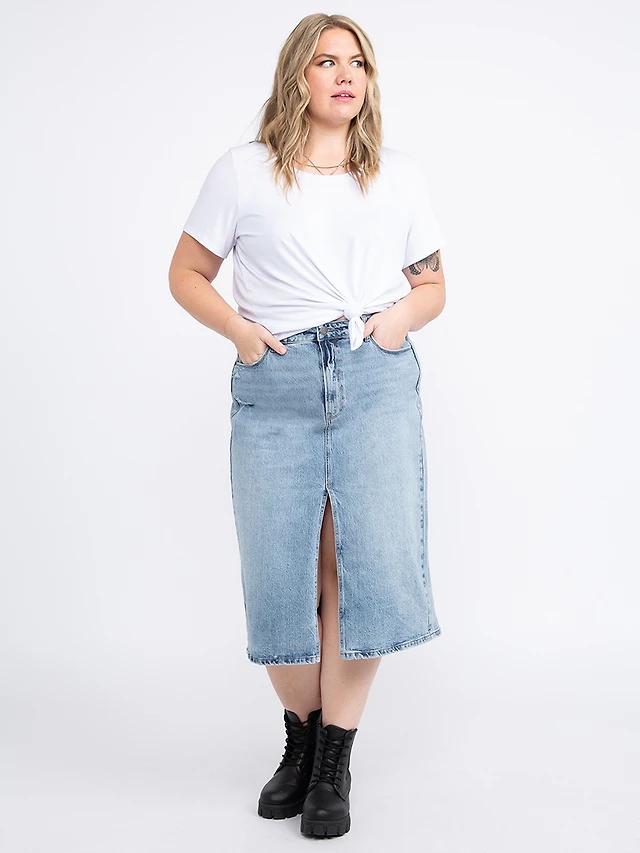 Women's Mid Waisted Maxi Skirt with Front Slit