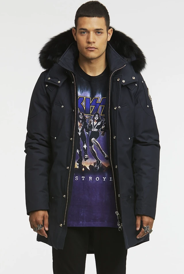 Black Carlyn Long Puffer Vest with Detachable Hood & Fur Trim
