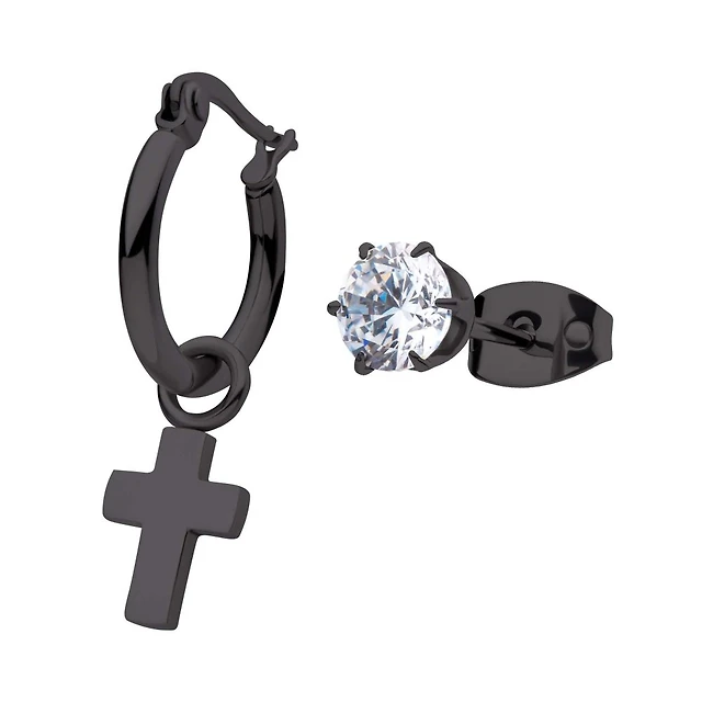 Pendientes de acero chapado en negro con circonita transparente de 4 mm