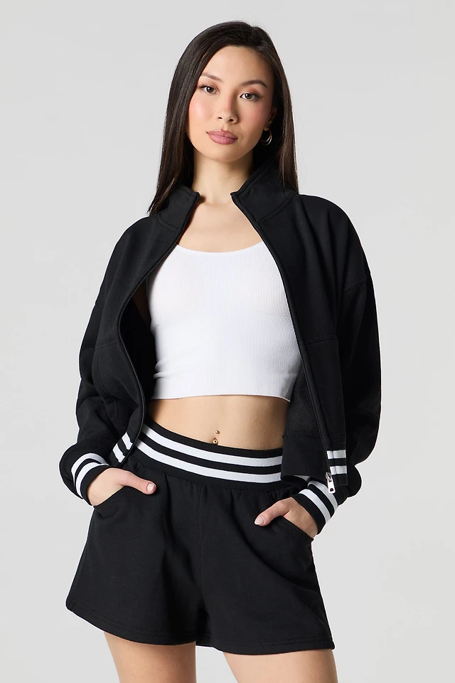 Jupe-short de tennis plissée avec liséré en tricot rayé