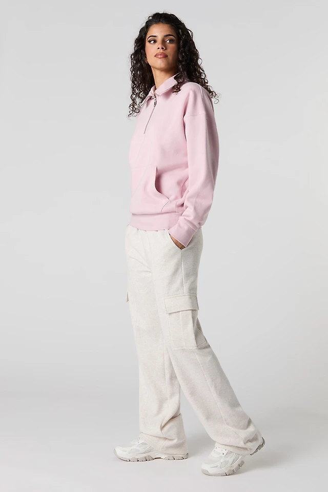 Chandail en molleton avec motif brodé et quart de fermeture à glissière