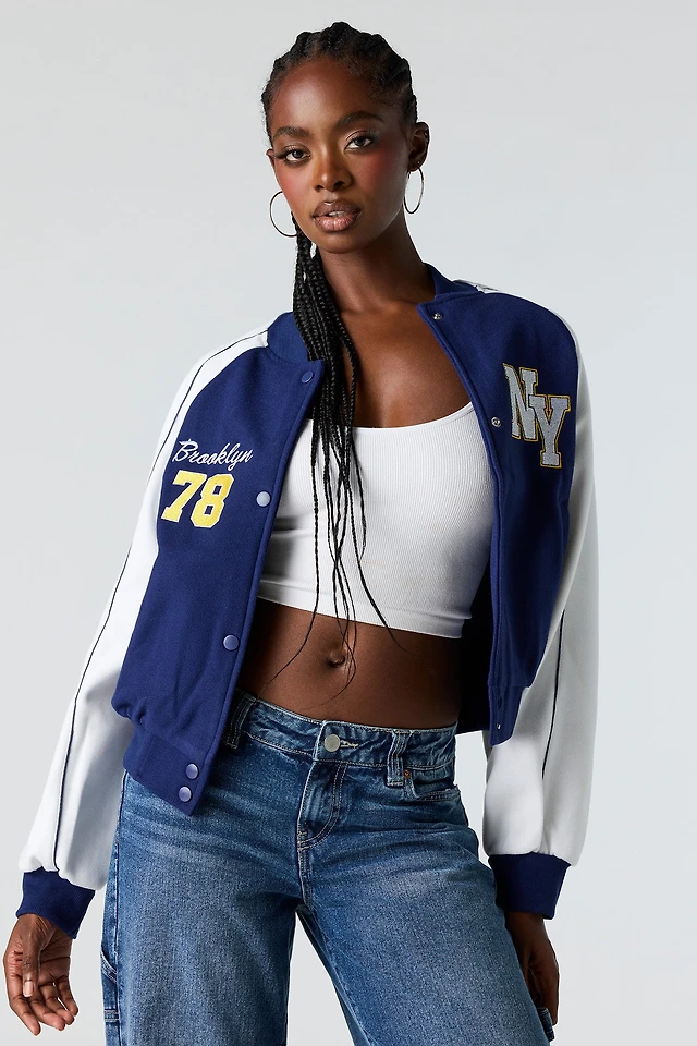 Cropped Nylon Bomber Jacket