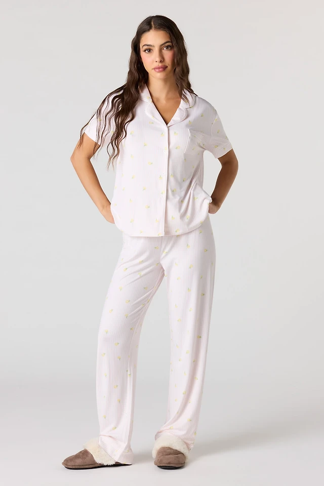 Barbie™ Pointelle Button-Up Top & Short Pajama Set