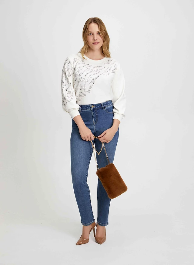 Rhinestone Detail Sweater & Slim Leg Jeans