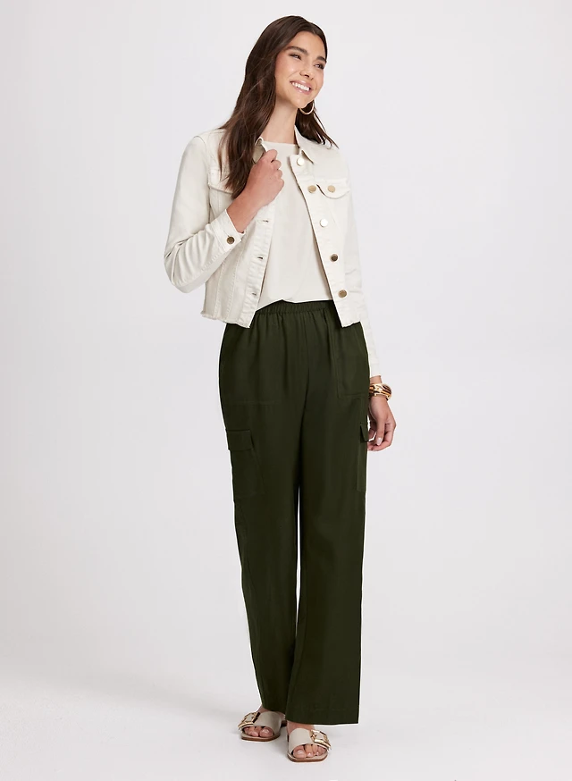 Cropped Denim Jacket & Sofia Cargo Straight-Leg Pants