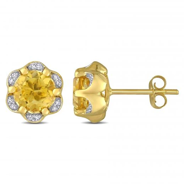 Citrine and Green Tourmaline with Diamond Accent Tree Pendant in Sterling Silver with 24K Gold Plate - 26"