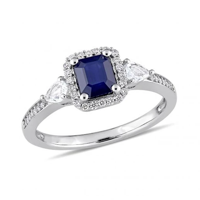 Julianna B Sterling Silver Created Pink Sapphire and Diamond Ring