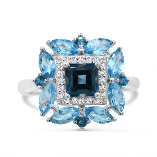 Julianna B Sterling Silver Multi-Colour Blue Topaz Ring