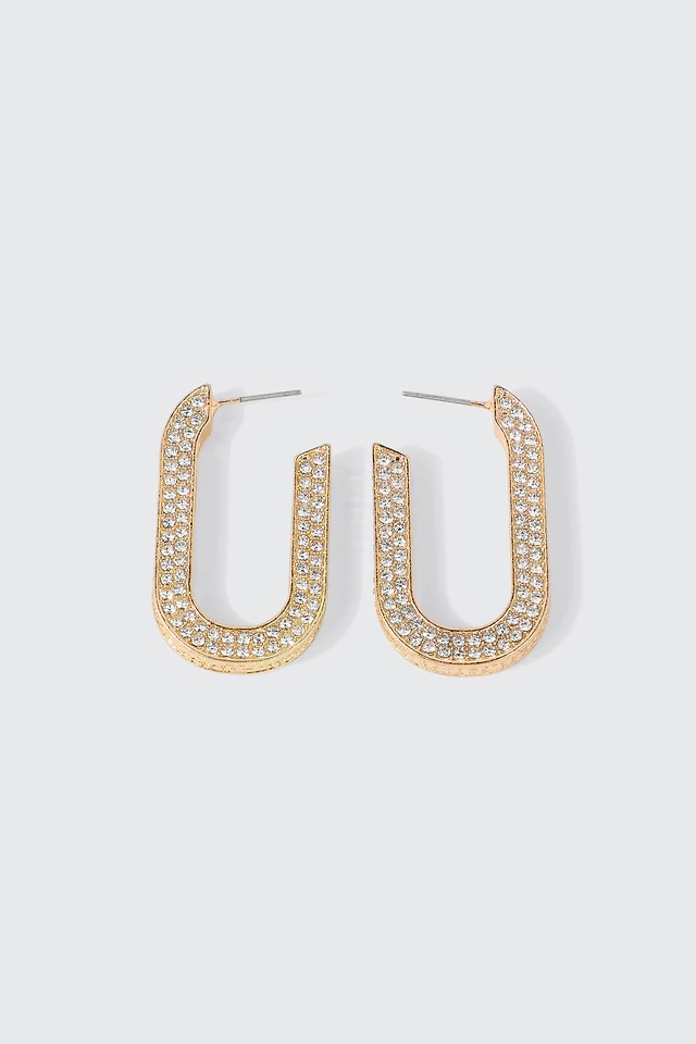 Ardene Embellished Rectangular Hoop Earrings in Gold | Stainless Steel