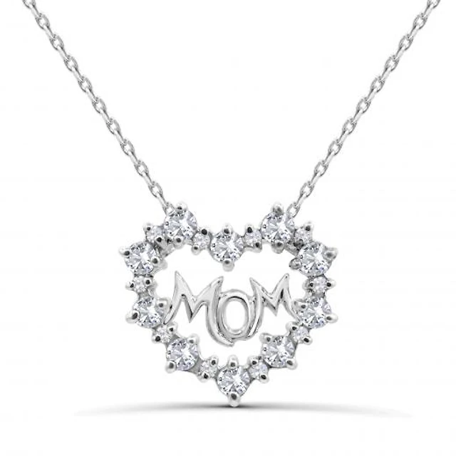 5.0mm Heart-Shaped Lab-Created Sapphire "MOM" Infinity Necklace in Sterling Silver