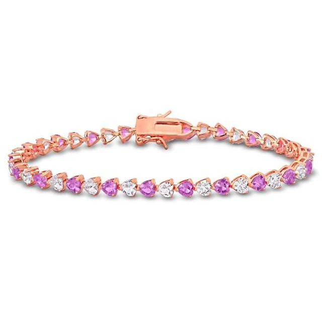 Julianna B 18K Rose Plated Sterling Silver CR Pink CR White Sapphire Brac 7.5