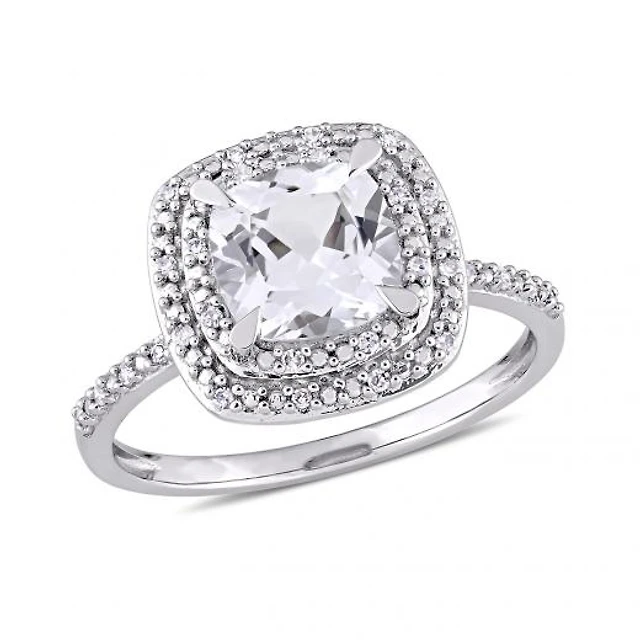 Julianna B 10K White Gold Created White Sapphire & 0.10CTW Diamond Ring