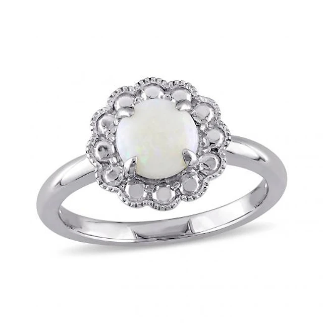 Opal and Diamond Accent Three Stone Ring 10K White Gold