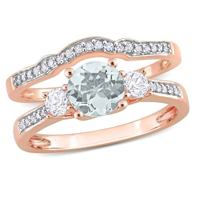 Julianna B 10K Rose Gold Aquamarine and Diamond Bridal Set