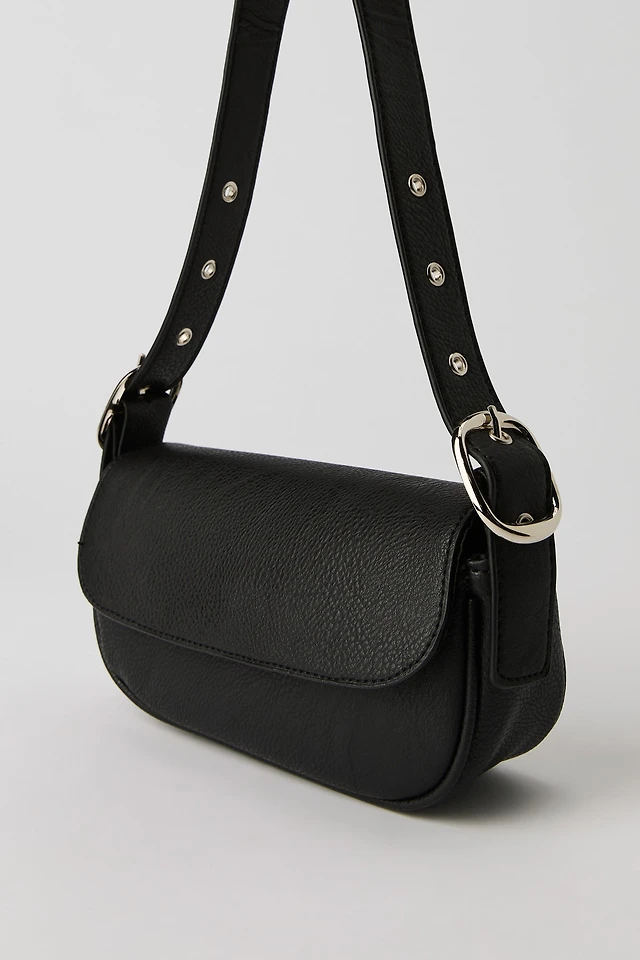Ardene Shoulder Bag with Buckle in Black | 100% Recycled Polyester/Faux Leather | Eco-Conscious