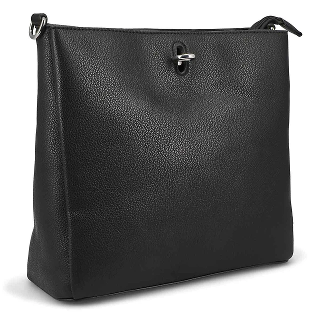 Ardene Turn Lock Shoulder Bag in Black | 100% Recycled Polyester/Faux Leather | Eco-Conscious
