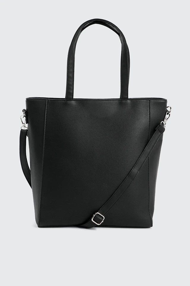 Ardene Large Faux Leather Tote Bag with Pouch in Black