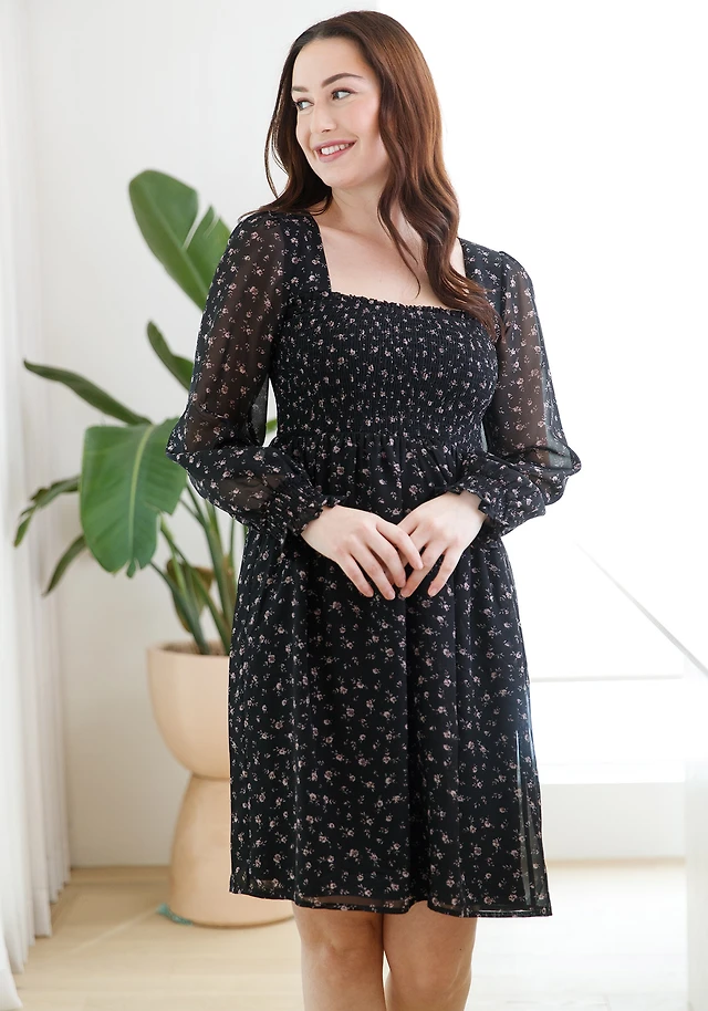 Ardene Flocked Floral Mesh Mini Dress in Black | Size | Polyester/Nylon/Elastane