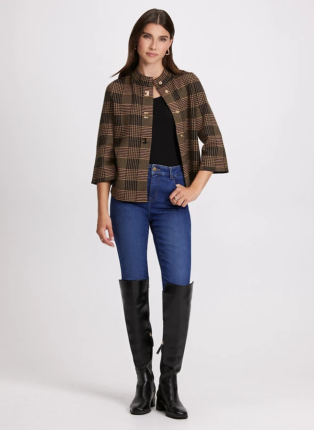 Houndstooth Print Cardigan & Straight Leg Jeans