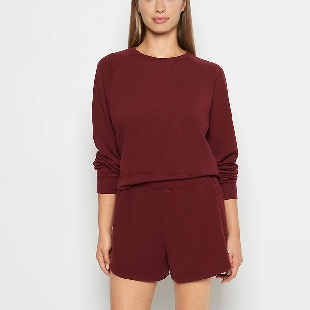 French Terry Crew Neck Sleep Top Russian Ruby Heather