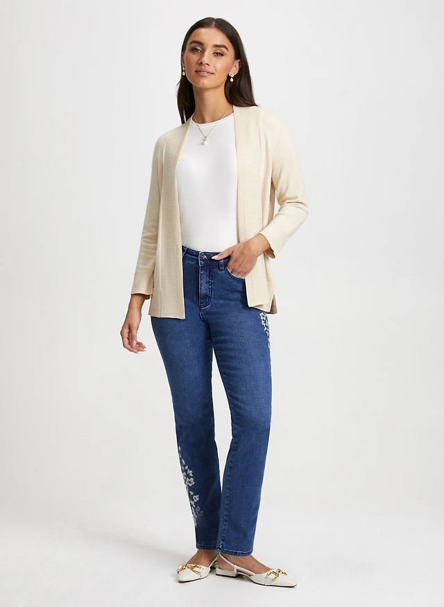 Stripe Motif Top & Pull-On Bootcut Jeans