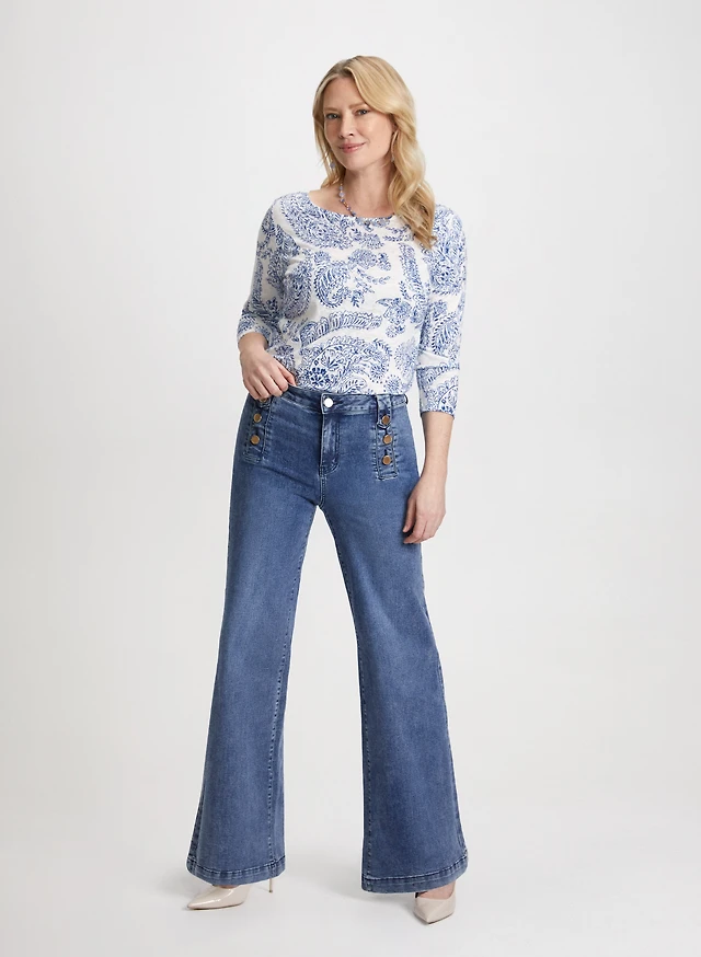 Cap Sleeve Paisley Print Top & Bootcut Jeans