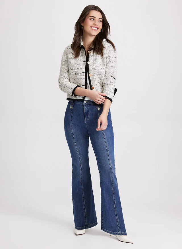 Peaked Lapel Jacket & Flare-Leg Pull-On Jeans
