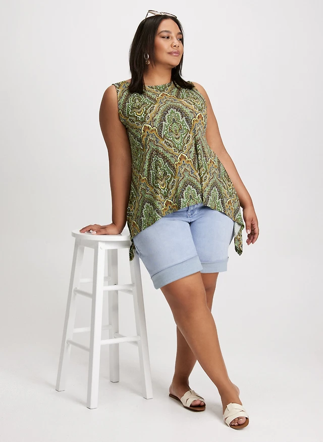 Sleeveless Paisley Top & Denim Bermuda Shorts