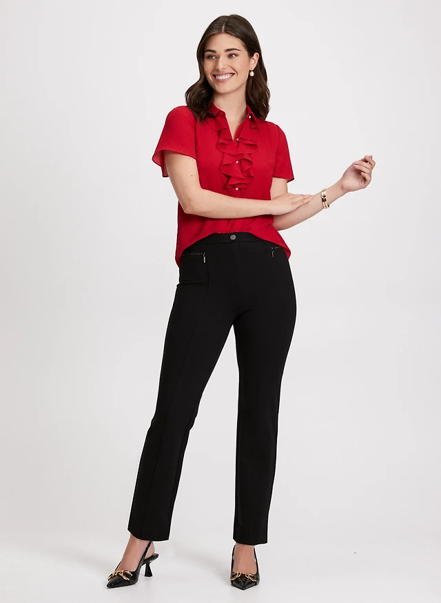 Short Sleeve Blouse & Straight-Leg Pants