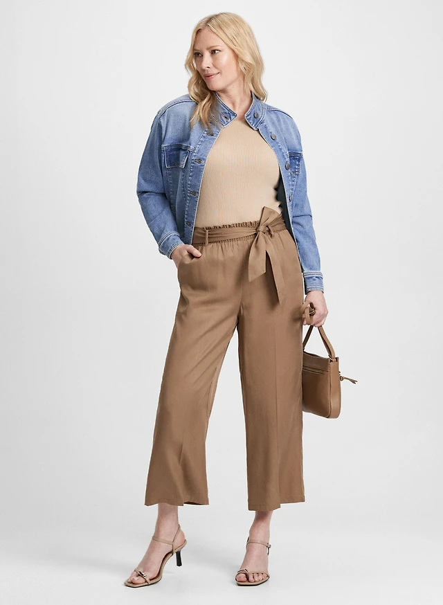 Linen Blend Blouse & Wide Leg Pull-On Capris