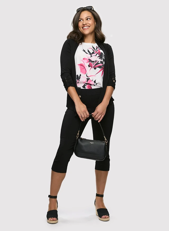 Embellished Sleeve Cardigan & Pull-On Essential Capris