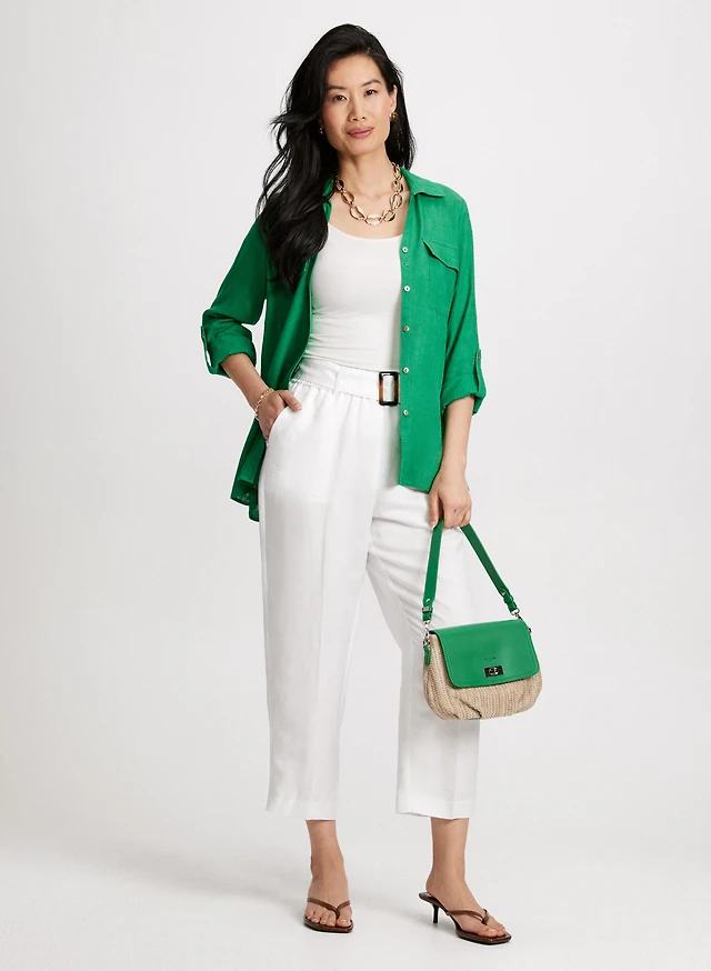 Linen Blend Blouse & Belted Capris