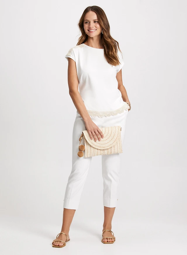 Smocked Waist T-Shirt & Rolled-Cuff Denim Capris
