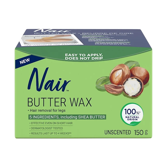 Nair Butter Wax for Legs, Unscented formula with Just 5 Ingredients, 150g