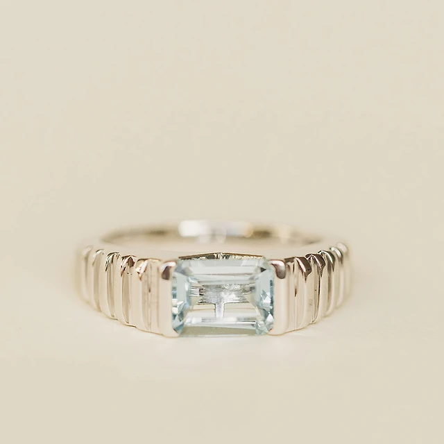 Ring with 8X6MM Emerald Cut Aquamarine in 14KT White Gold